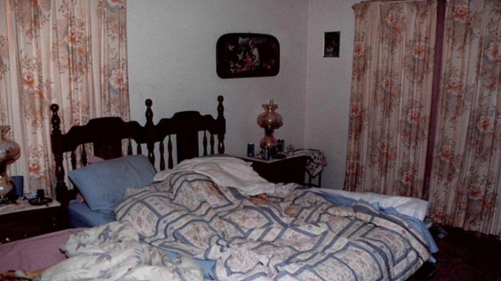 Þeir dýrkuðu lásinn upp og opnuðu. Ólýsanlegur óþefur tók á móti henni. Í hjónarúminu lá rotnandi lík Scott. Þar sem hnakki hans hafði verið, var stórt gat eftir skotið sem hafði banað honum.