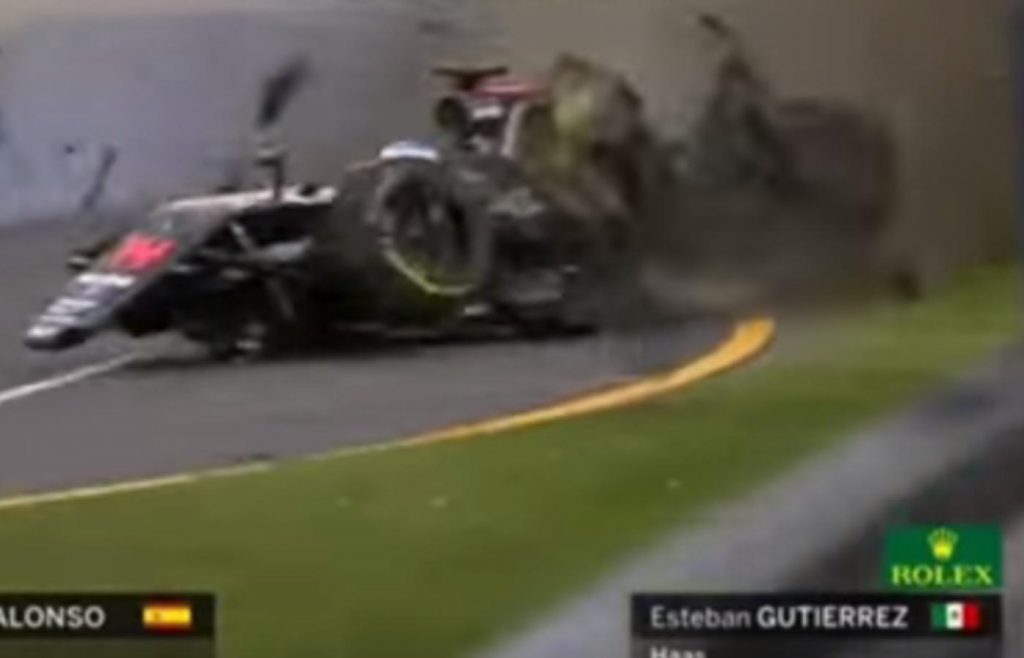 Á 17 hring, eða þegar um einn þriðji var búinn af kappakstrinum, ók Alonson á eftir keppinaut sínum, Esteban Gutierrez. Þegar Alonso ætlaði að taka fram úr Gutierrez keyrði Alonson aftan á bifreið Gutierrez með þeim afleiðingum að hann lenti utan brautar. McLaren-bifreið Alonso valt tvisvar áður en hún stöðvaðist á hvolfi upp við vegg.