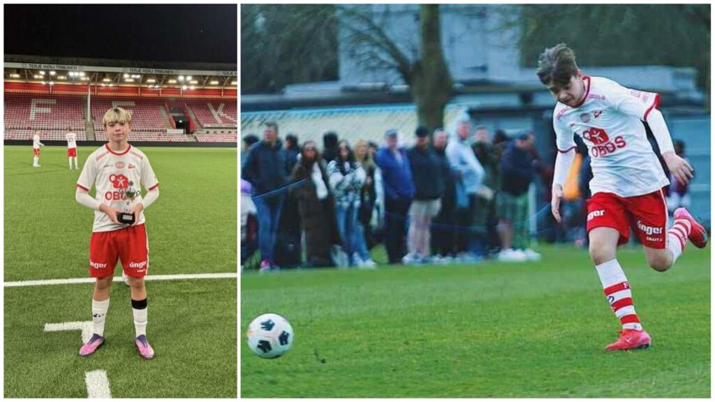 Valdimar er efnilegur sóknarmaður sem er fæddur árið 2012, en honum var boðið að spila með unglingaliðið Fredrikstad í sumar þar sem hann fór á kostum.