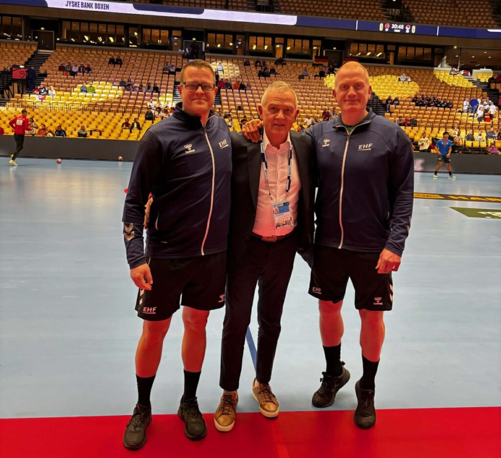 Eins og sjá má á meðfylgjandi mynd voru Anton og Jónas brattir skömmu fyrir leik en þeir njóta styrkrar leiðsagnar sálfræðingsins kunna Jóhanns Inga Gunnarssonar sem heldur utan um andlega styrktarþjálfun dómarapara mótsins eins og mörg undanfarin stórmót.